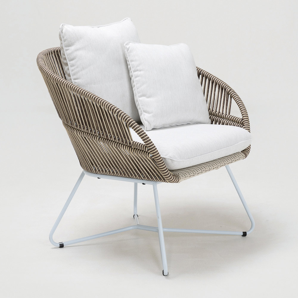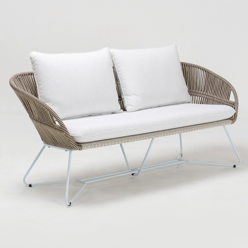 Outdoor lounge set including 2 armchairs and 1 2-seater sofa made with an aluminium frame, Olefin/PP ROPE weave with a two-tone pearl white and cappuccino finish and seat and back cushion in outdoor fabric in the Off White colour.