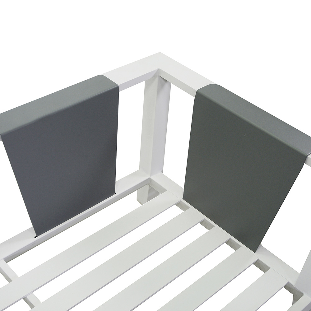 This lounge set features a white powder-coated aluminum frame , which not only adds a touch of modern elegance , but also ensures durability and weather resistance . The light gray cushions , made of water-repellent and removable fabric, offer unbeatable comfort, making this set ideal for long periods of relaxation outdoors.