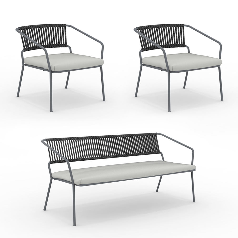 Garden lounge set consisting of 2 armchairs and 1 2-seater sofa Made in Italy
