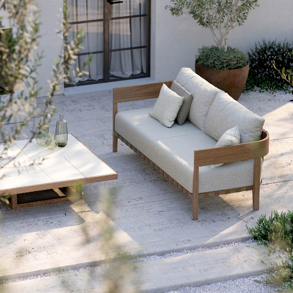 Garden Sofa in Teak Wood and Fabric Made in Italy - Briga