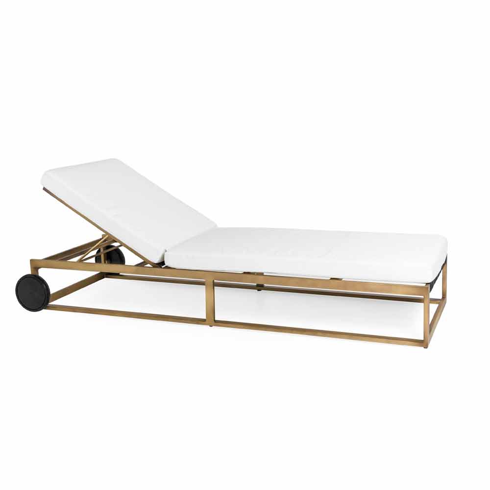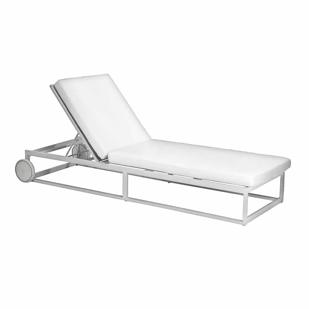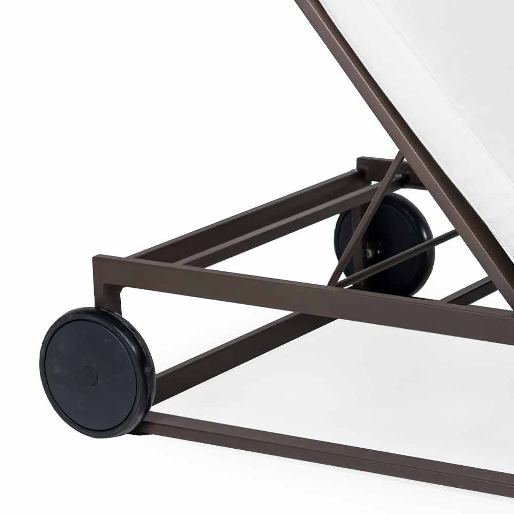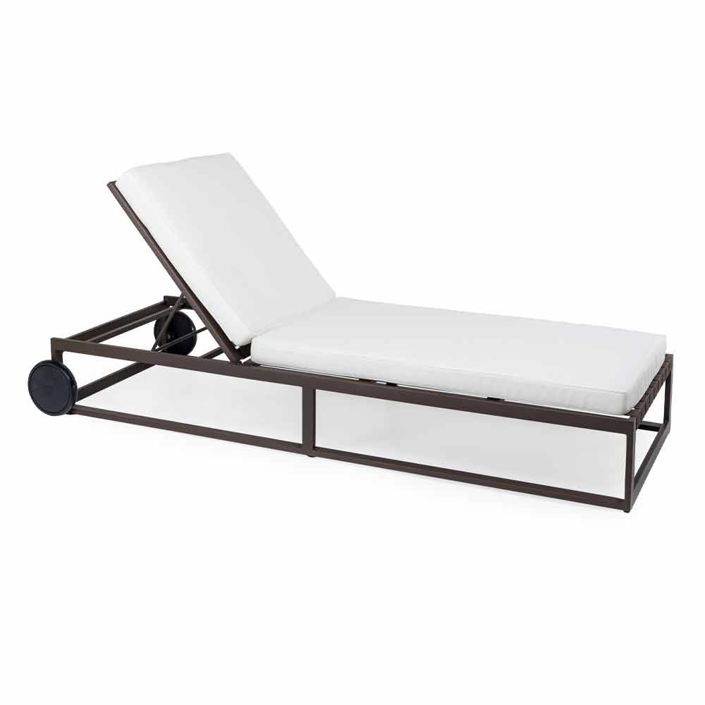 Sunbed with aluminum wheels in 3 finishes and cushions, luxury design.