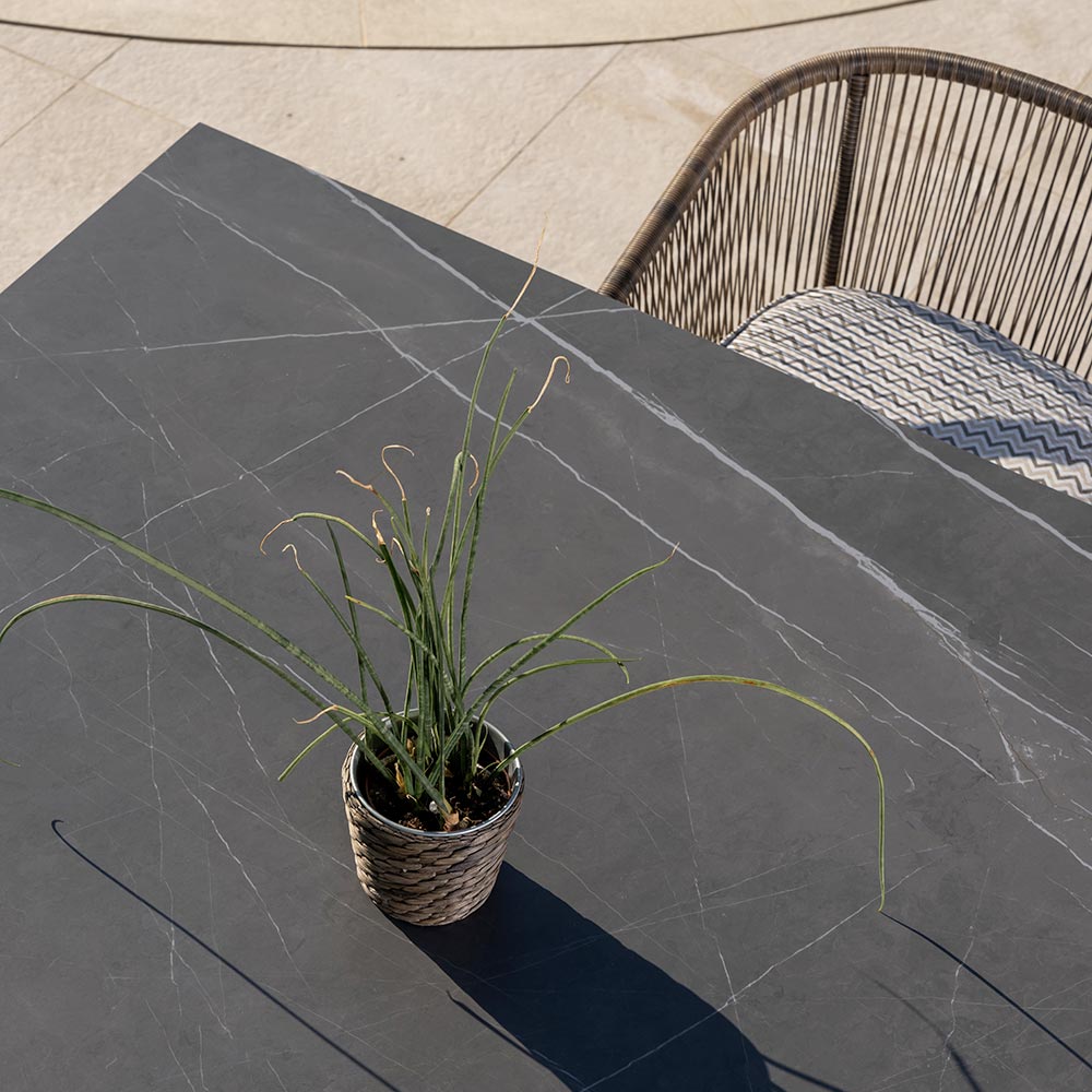 This table is perfect for being placed in sheltered outdoor spaces and for comfortably hosting your guests during moments of conviviality.