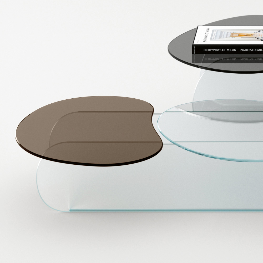 The innovative composition of transparent and colored surfaces not only increases the perception of space, but also offers the practicality of daily use, ideal for those looking for a design piece that is as much a center of conversation as it is of utility. Elegant and multifunctional, this table is a distinctive choice for those who appreciate design that speaks the language of modernity and functionality .