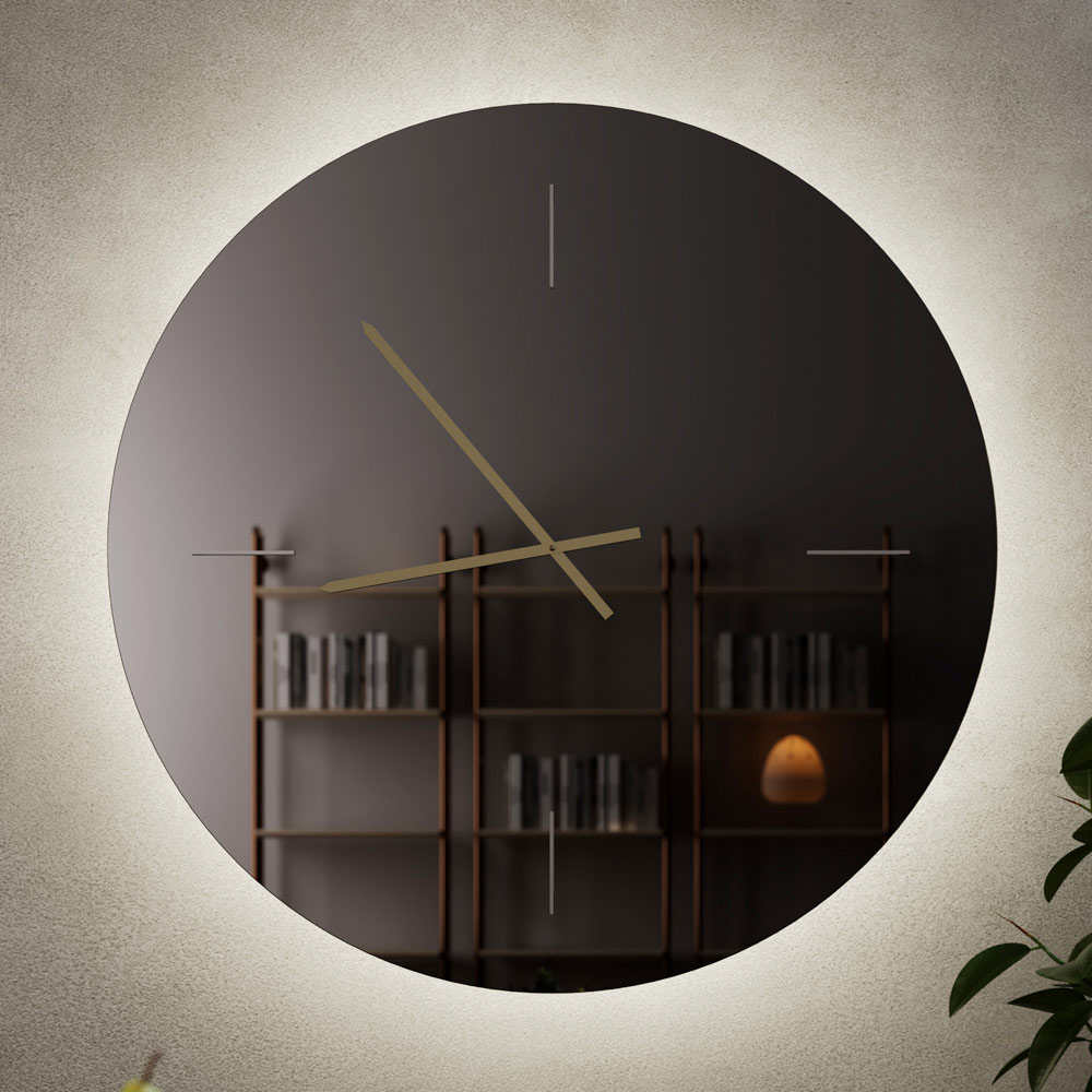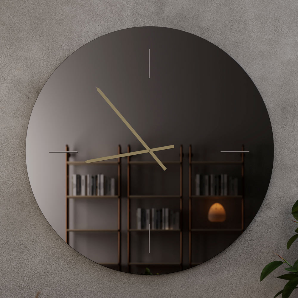 The smoked glass wall clock is a modern and sophisticated design accessory, perfect for contemporary and elegant spaces. The smoked glass dial creates a refined mirrored effect that adds visual depth and enhances the wall with subtle, stylish detail.