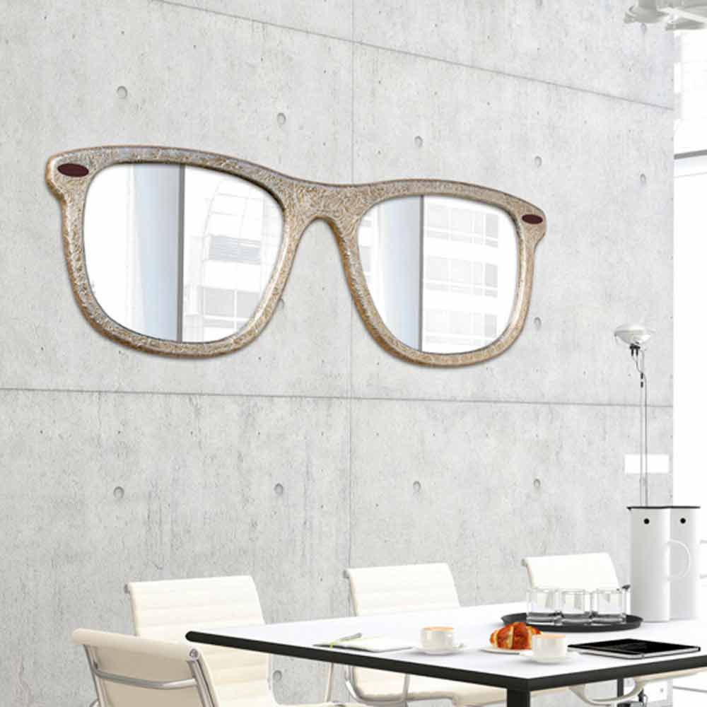 Glasses shaped mirror Glass, hand decorated