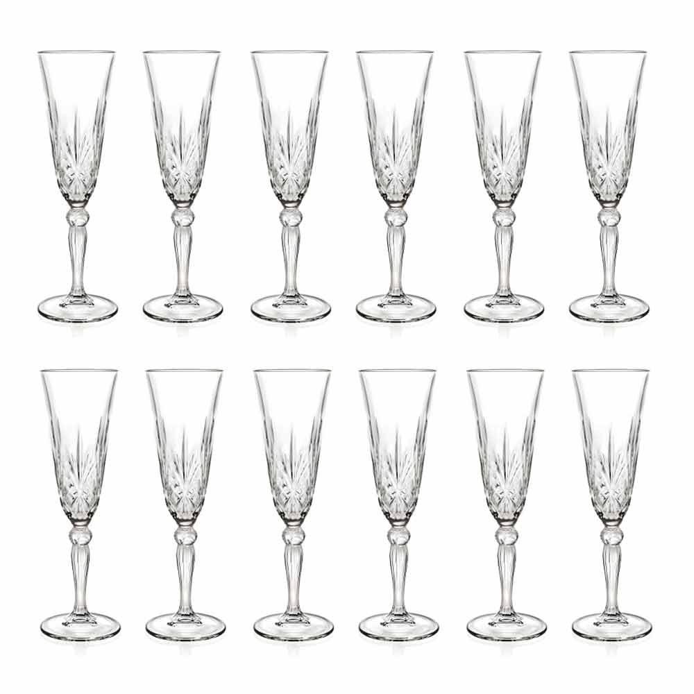 12 flute glasses in ecological crystal design in vintage style of high quality 100% made in Italy.