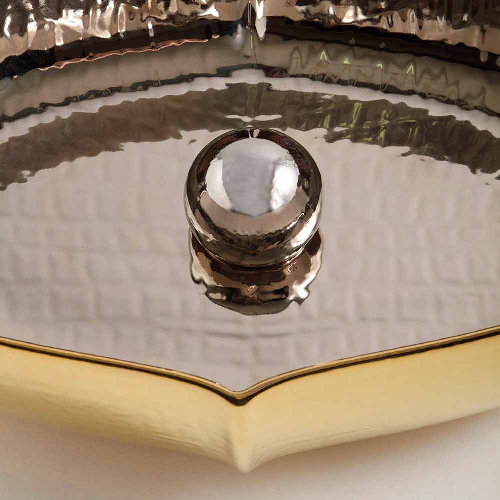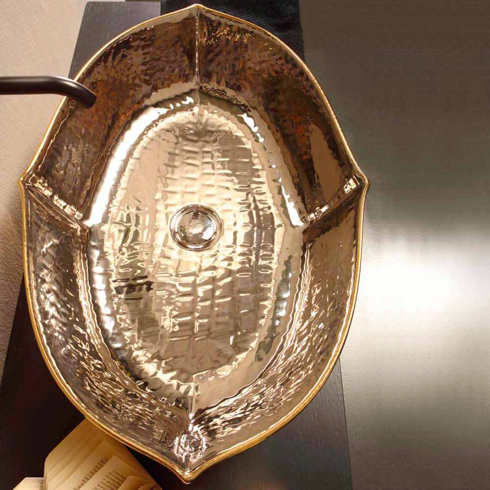 Platinum and gold ceramic countertop washbasin of Oscar made Italy design