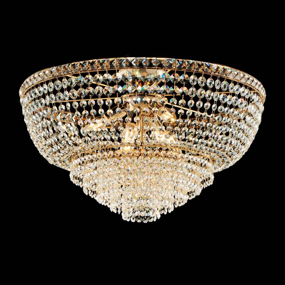 Refined and striking, this luxury ceiling light in iron and gold-plated brass with rhinestones illuminates rooms with a precious, enveloping light. The elegant structure, composed of concentric bands of luminous rhinestones , creates a captivating play of reflections that enhances the ceiling and gives the room a sophisticated atmosphere.