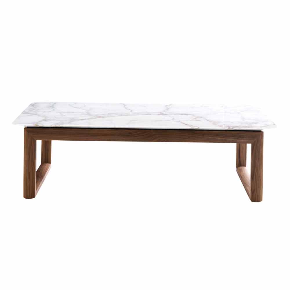Design coffee table in solid wood and marble made in Italy Grilli York