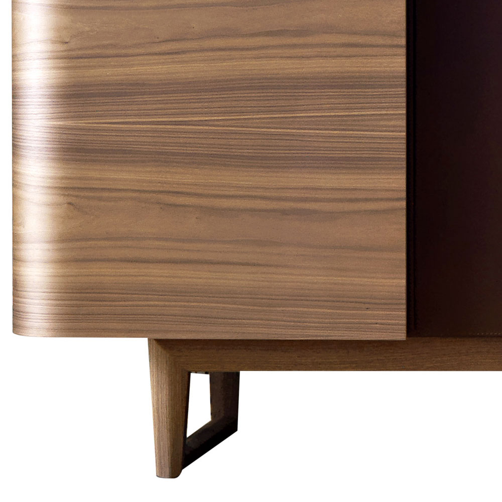 Material veneered wood and solid canaletto walnut; natural leather