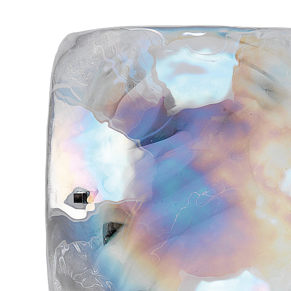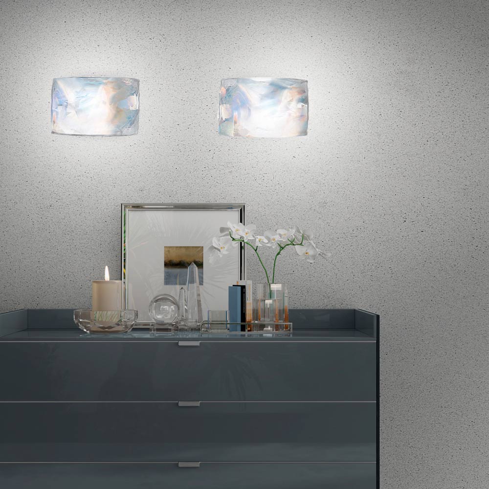 streaked white plate glass with iris decoration (mother of pearl effect) that gives the environment a touch of refined elegance thanks to the particular texture and the unprecedented visual effect created by the glass for a unique result with great personality.