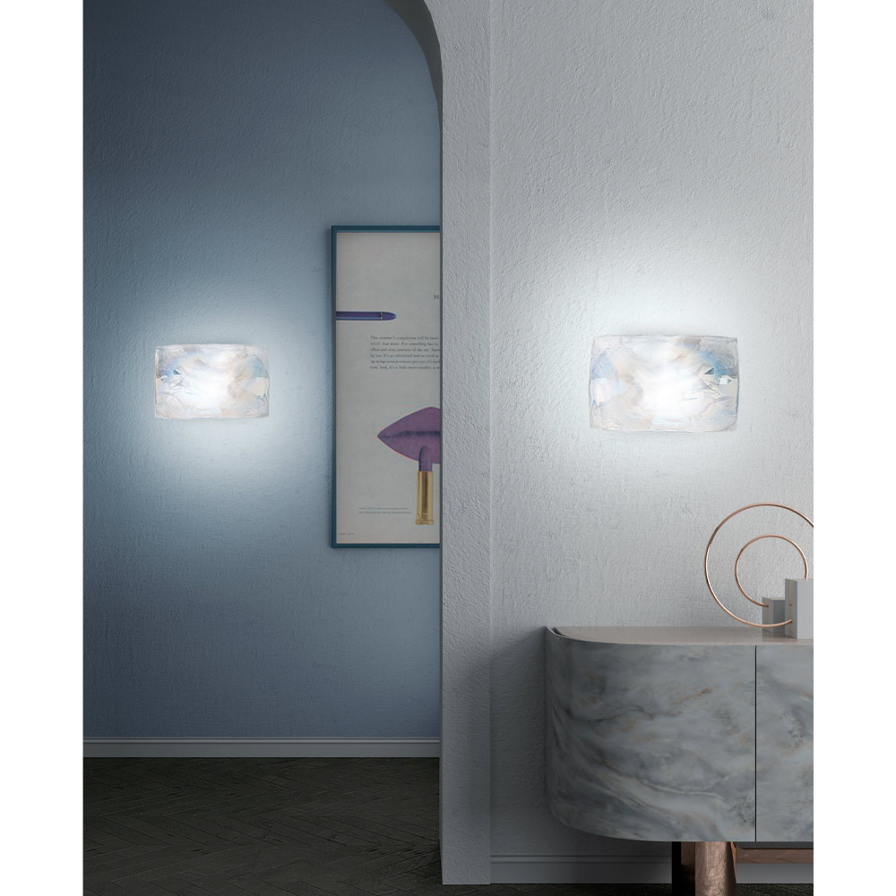 Handcrafted wall lamp in blown Venetian glass with iris decoration.