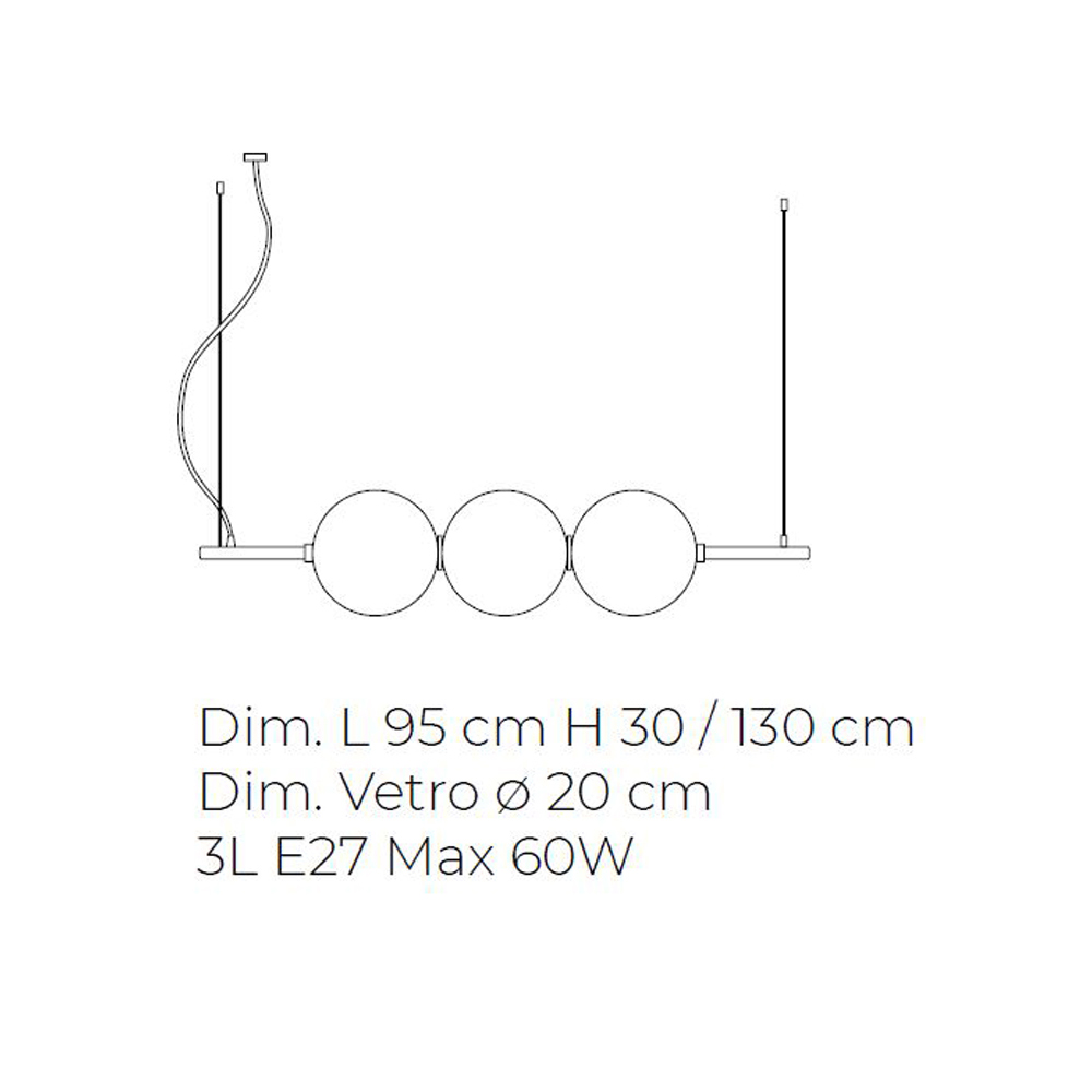 Suspended lamp with 3 lights in hand-blown overlaid glass in Venice.