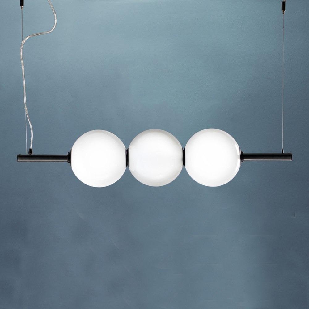 - 2 cased white glass spheres, 1 cased smoked glass sphere;
