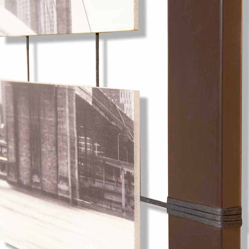 Modern design wall painting with dark brown lacquered wooden frame and ten MDF panels. The hanging panels are hand decorated.