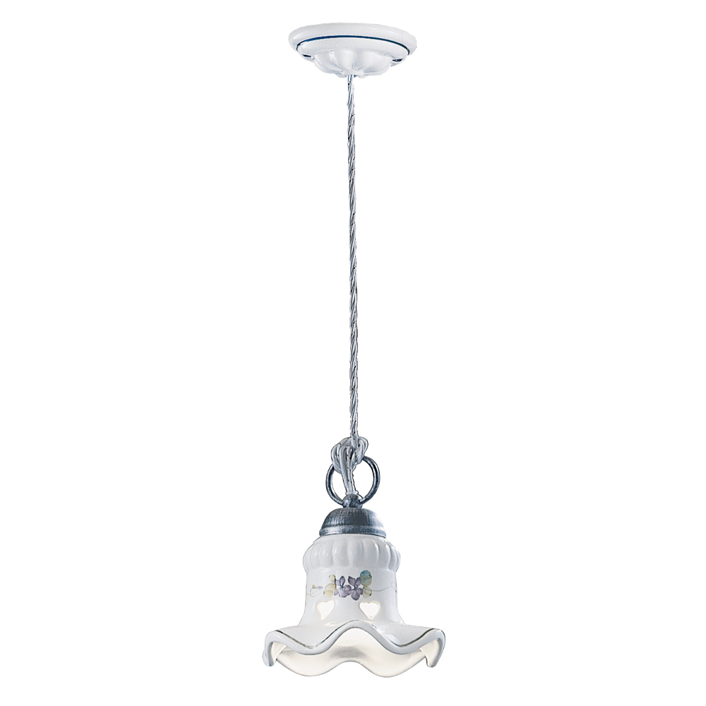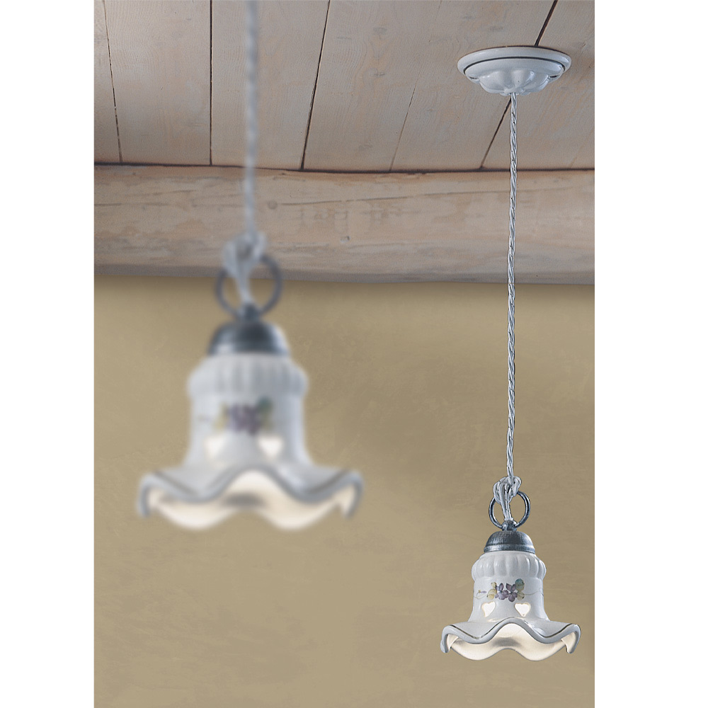 Hand-decorated iron and ceramic pendant lamp, made in Italy by Ferroluce.