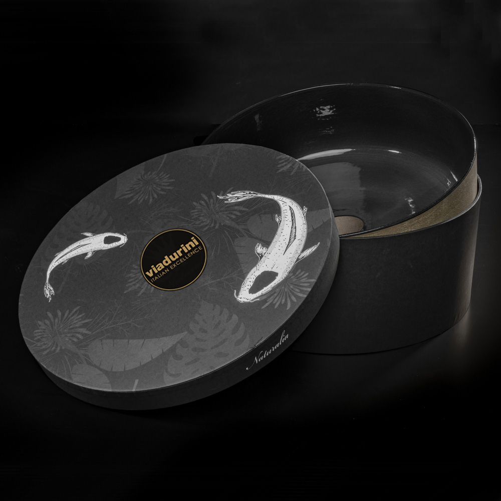 Countertop washbasin with a round shape in refractory clay handcrafted in Italy and turned by hand with third fire cooking. Its aesthetic is characterized by the perfect combination of the natural waxed and waterproofed exterior with a more rustic style and the glossy and vitrified interior in black finish, the color par excellence of elegance and refinement linked to mysterious atmospheres. Each element of the washbasin is handcrafted to give life to an exclusive furnishing solution, of high value and of unparalleled quality.