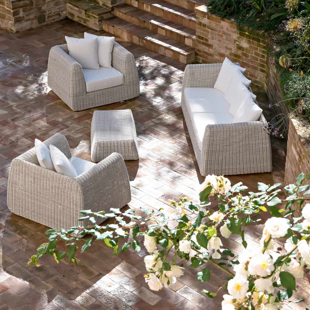 The refined design , the very high quality of the materials and its sinuous shapes make it perfect for interior and exterior furnishings. Thanks to the use of special high-quality materials , this outdoor lounge does not fear bad weather and temperature changes thanks to the certification of the woven fiber.