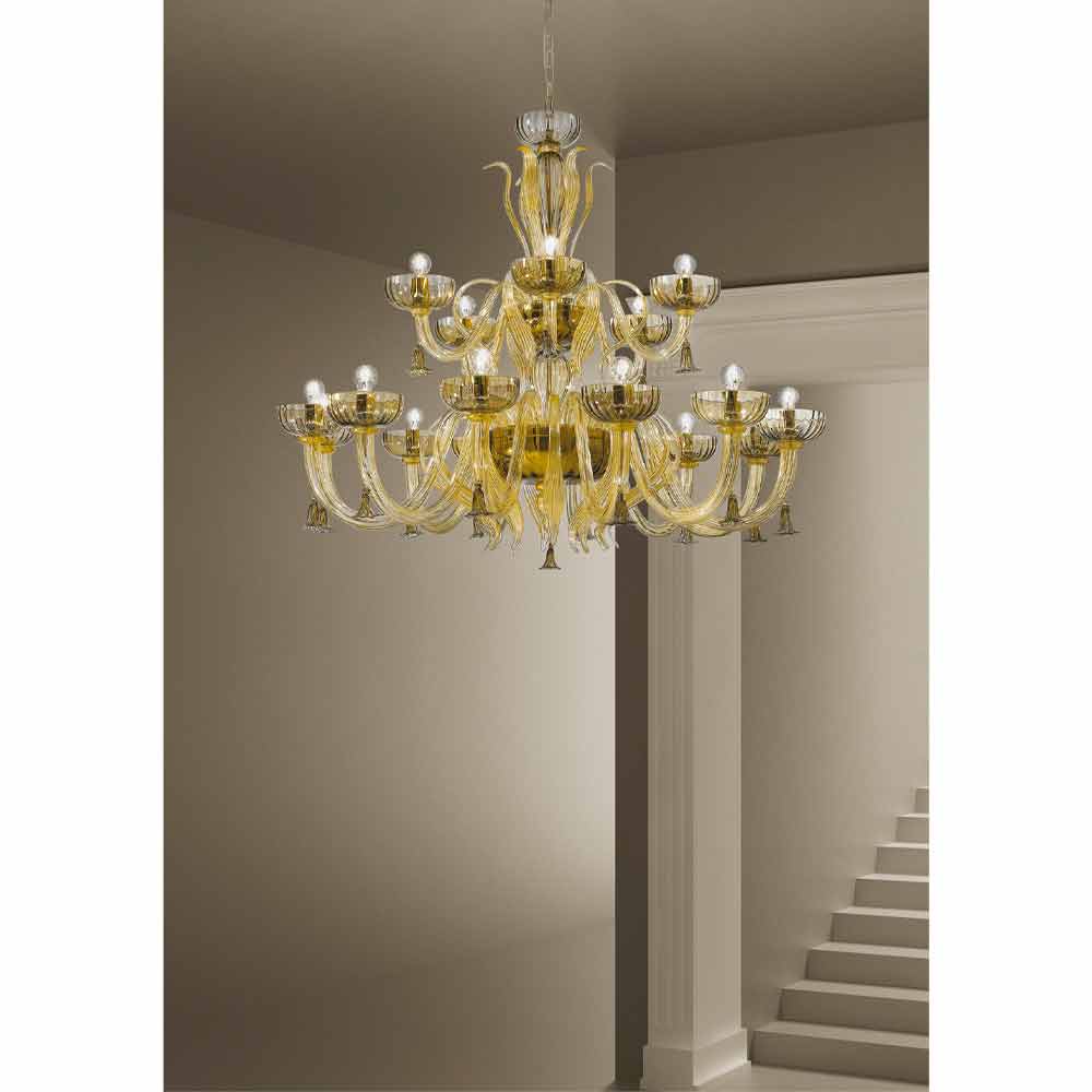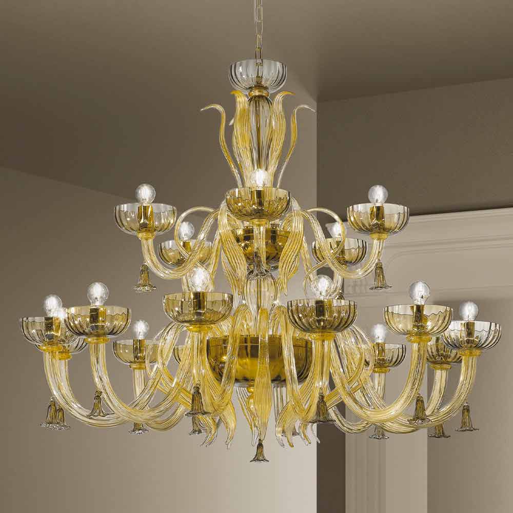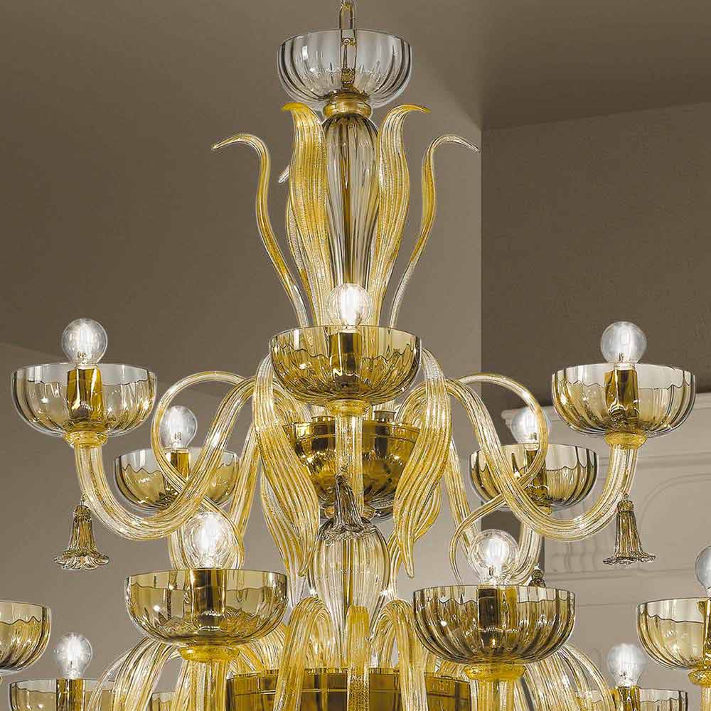 18 lights chandelier in Venetian glass and 24k gold, handmade in Italy.