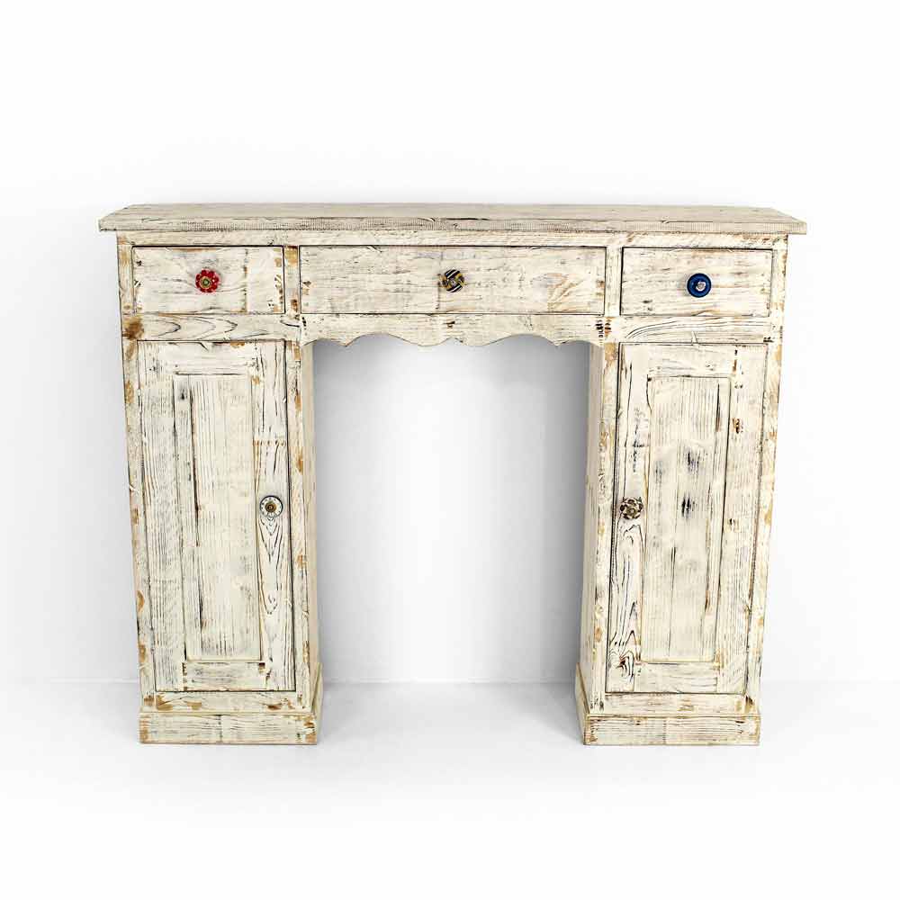 Console in solid fir wood painted with aged white earth, luxury item Made in Italy.