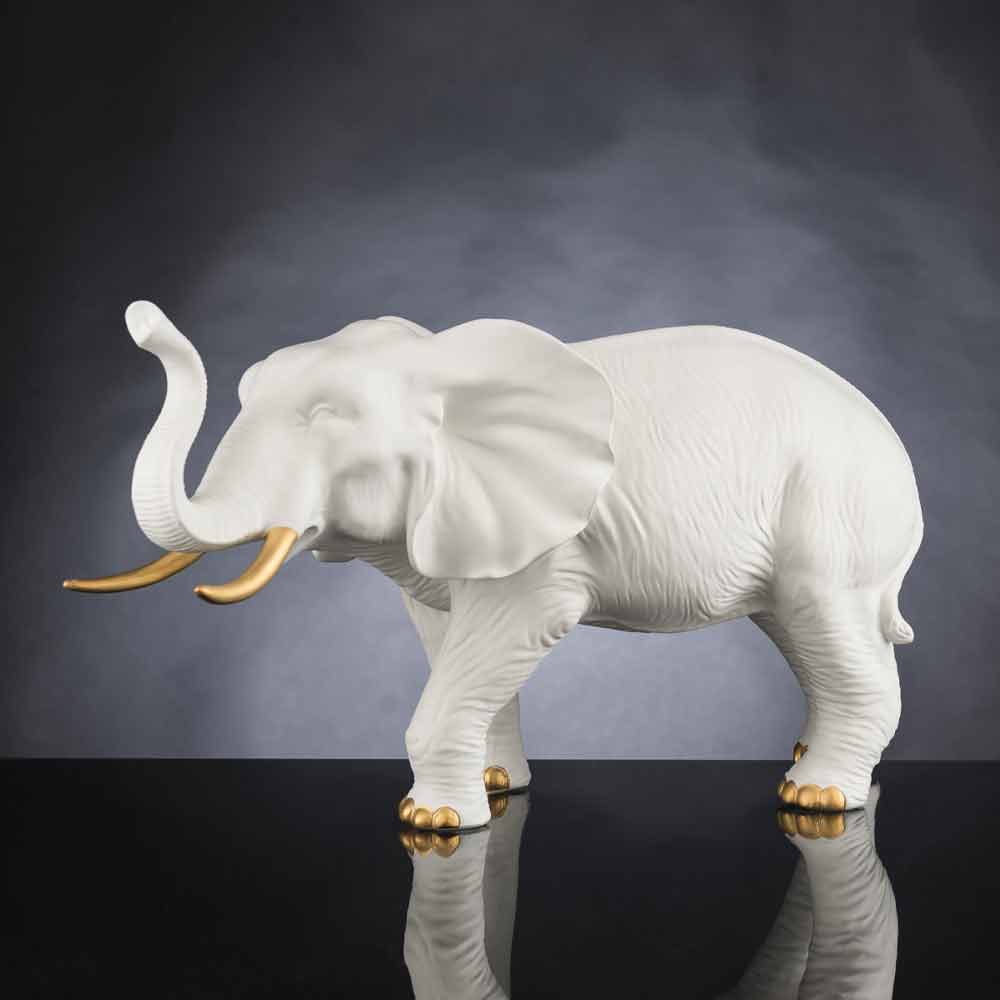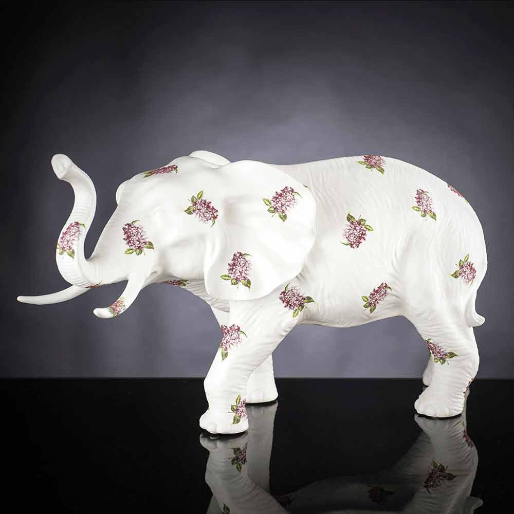 Elephant-shaped statue in hand-crafted colored ceramic Made in Italy, luxury.