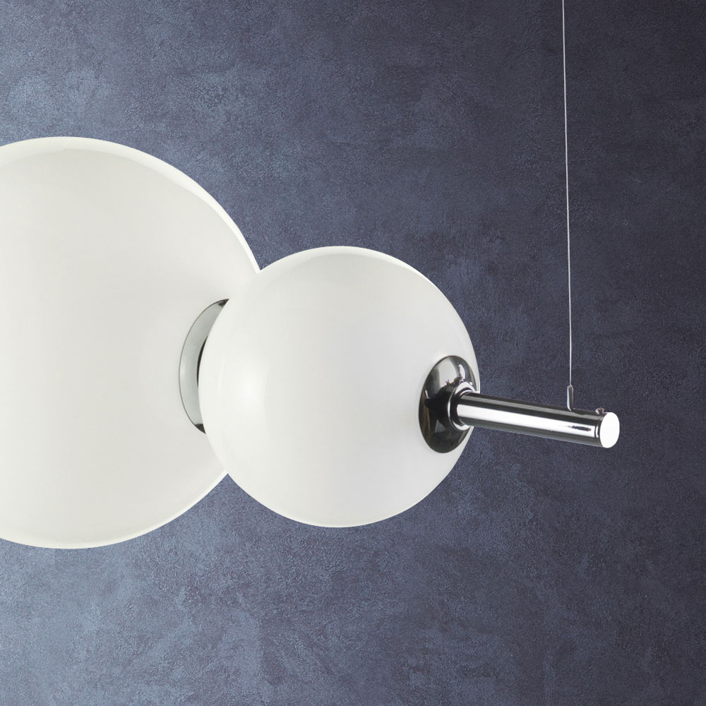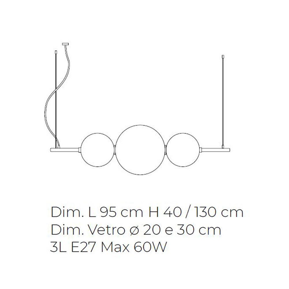 bulbs included. The central sphere is only available in a white coated glass finish.