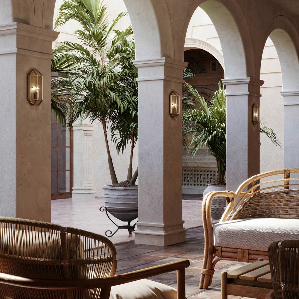 burnished brass. Available sizes:- 16 x 7,5 x 35 cm - 2 lights MAX 28W E14 - 3 kg