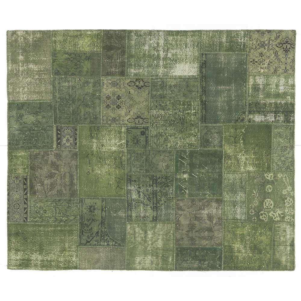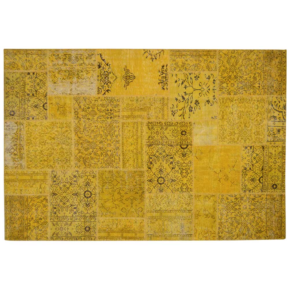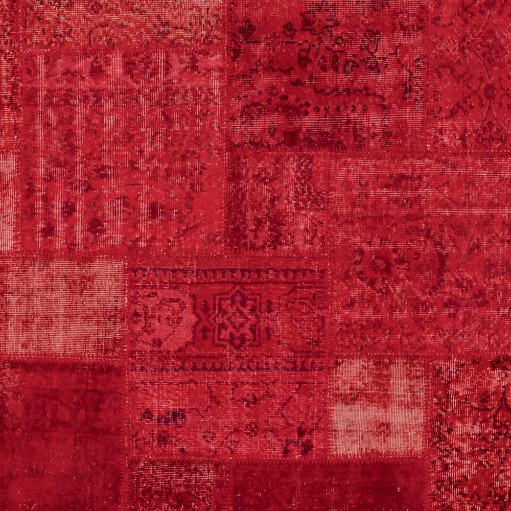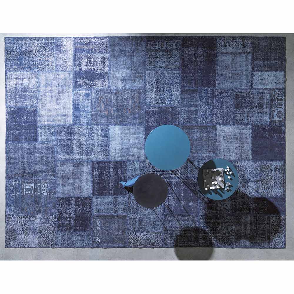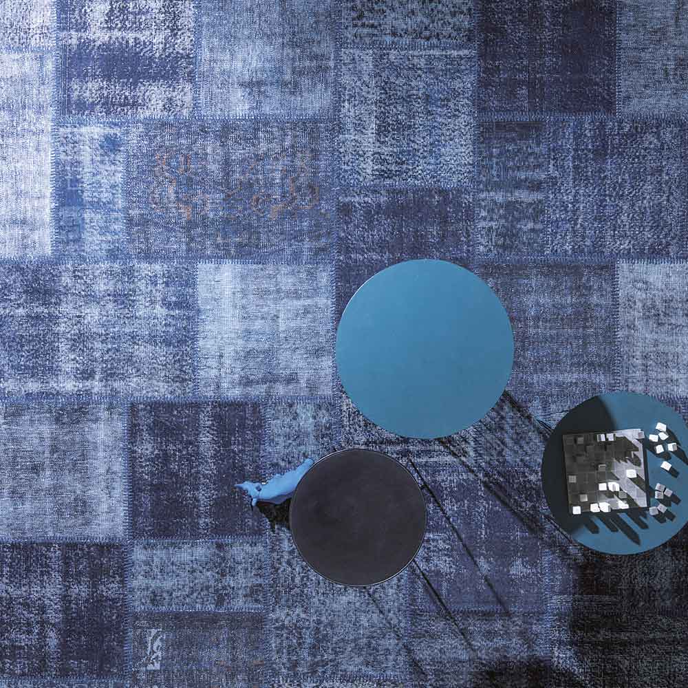 The peculiarity of this carpet is given by the patchwork process for which ancient Anatolian rugs are first bleached and dyed, then cut into squares of different shapes and colors and then sewn together by hand.