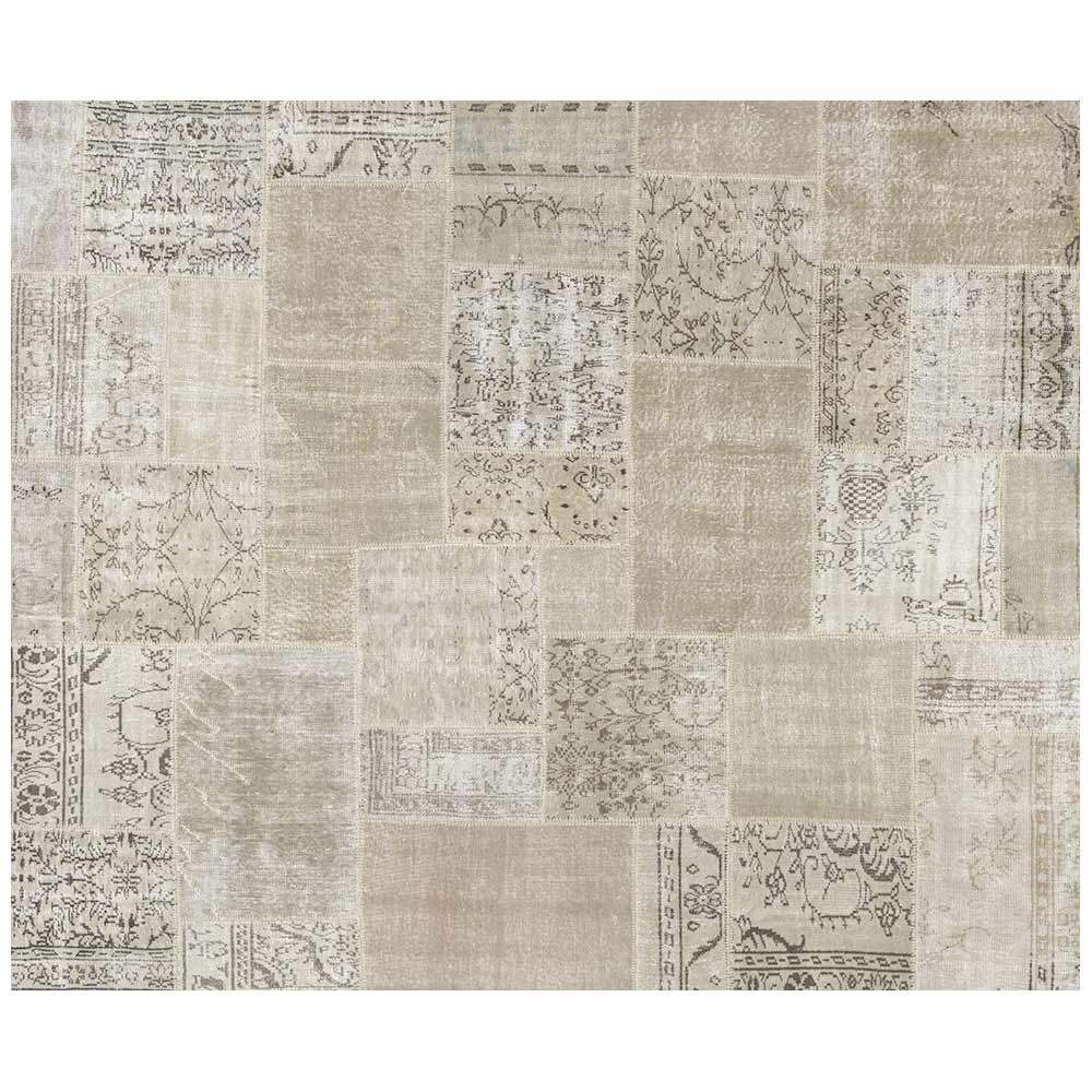Hand-knotted patchwork design carpet for the living room in wool and cotton, various colors.