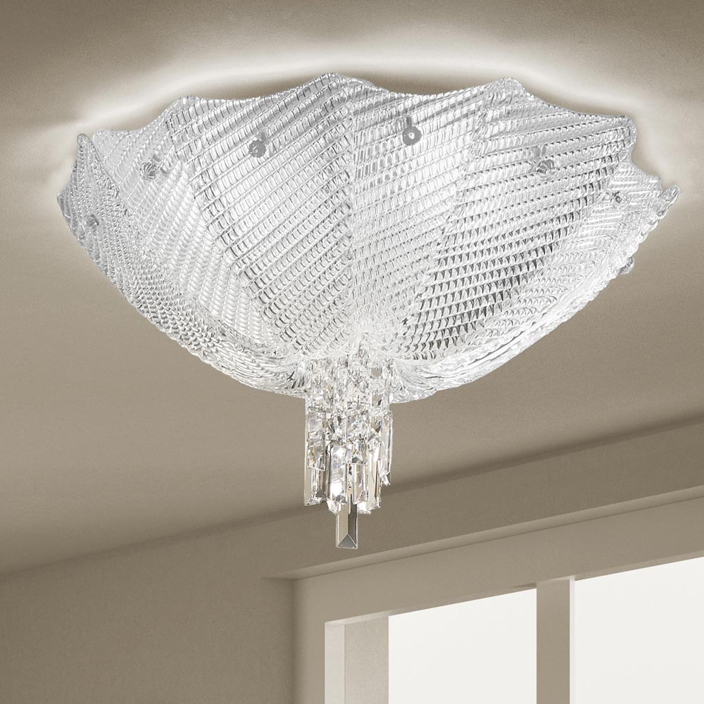 Handcrafted ceiling lamp in Venetian glass and metal Made in Italy.