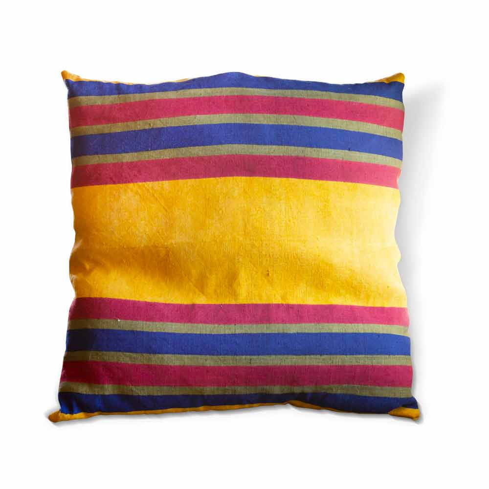 Cushion of fine craftsmanship with square dimensions, made of resistant old canvas and entirely hand-painted, unique piece of quality made in Italy.