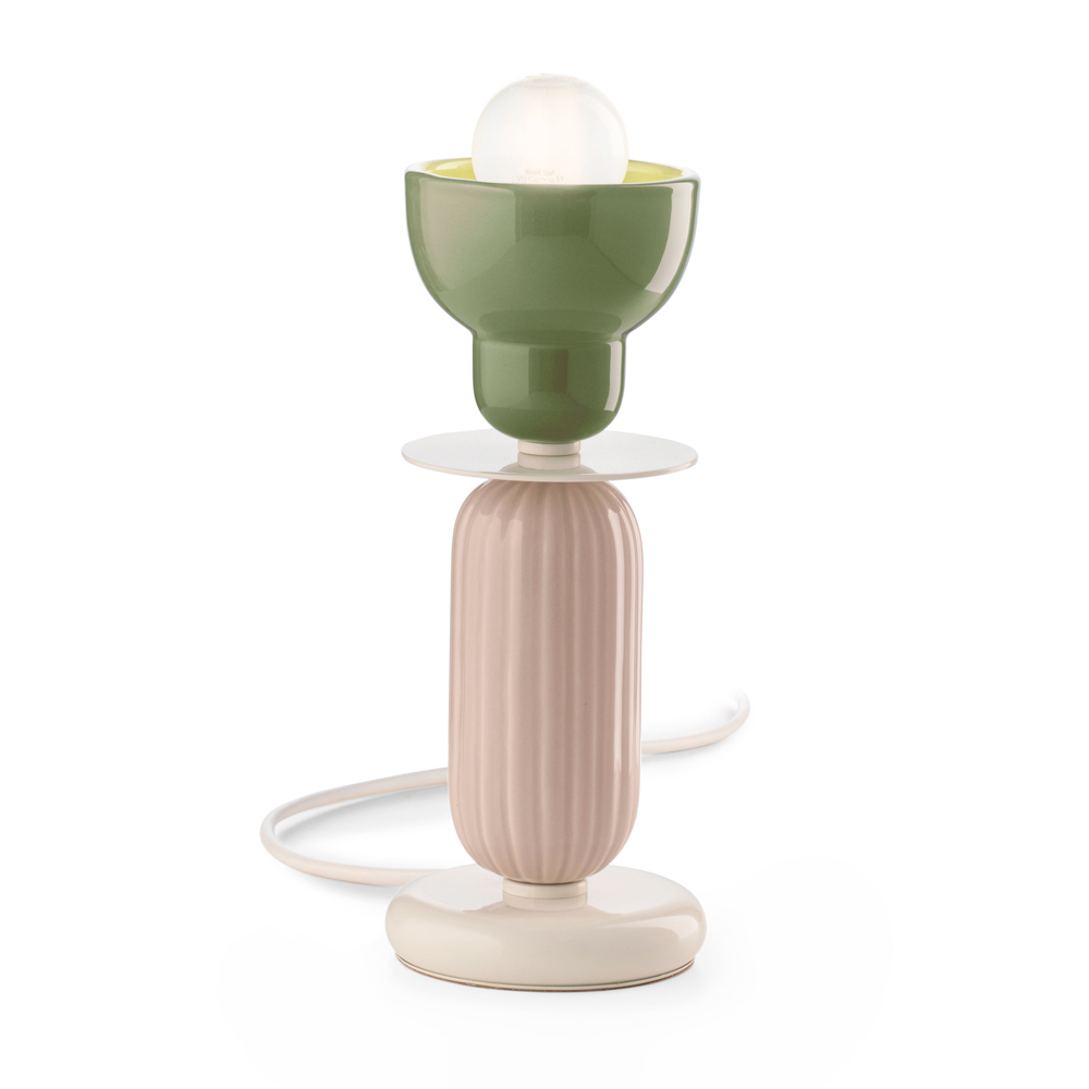 Table lamp made of colored ceramic , white painted iron base and cable Ā  with white PCV wiring entirely Made in Italy.