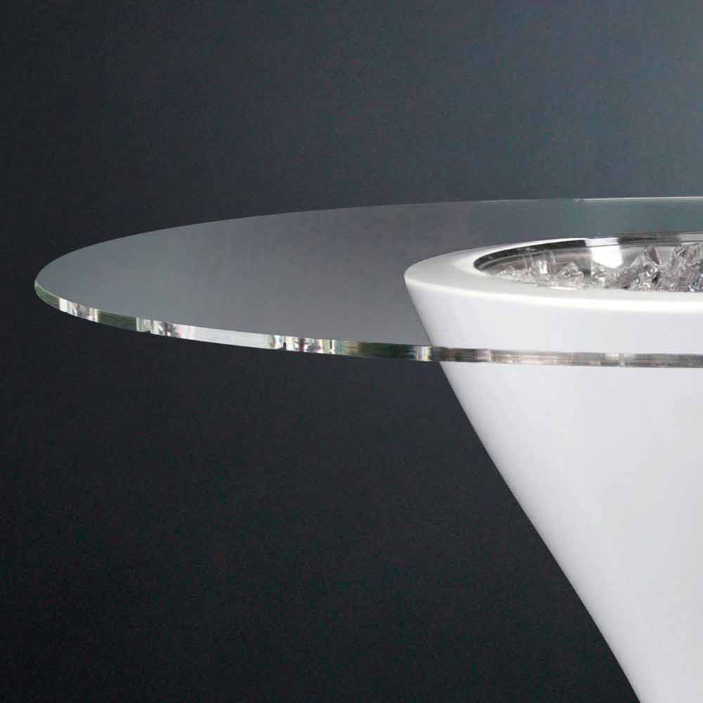 High round coffee table with glass top and polyethylene base Made in Italy, luxury.