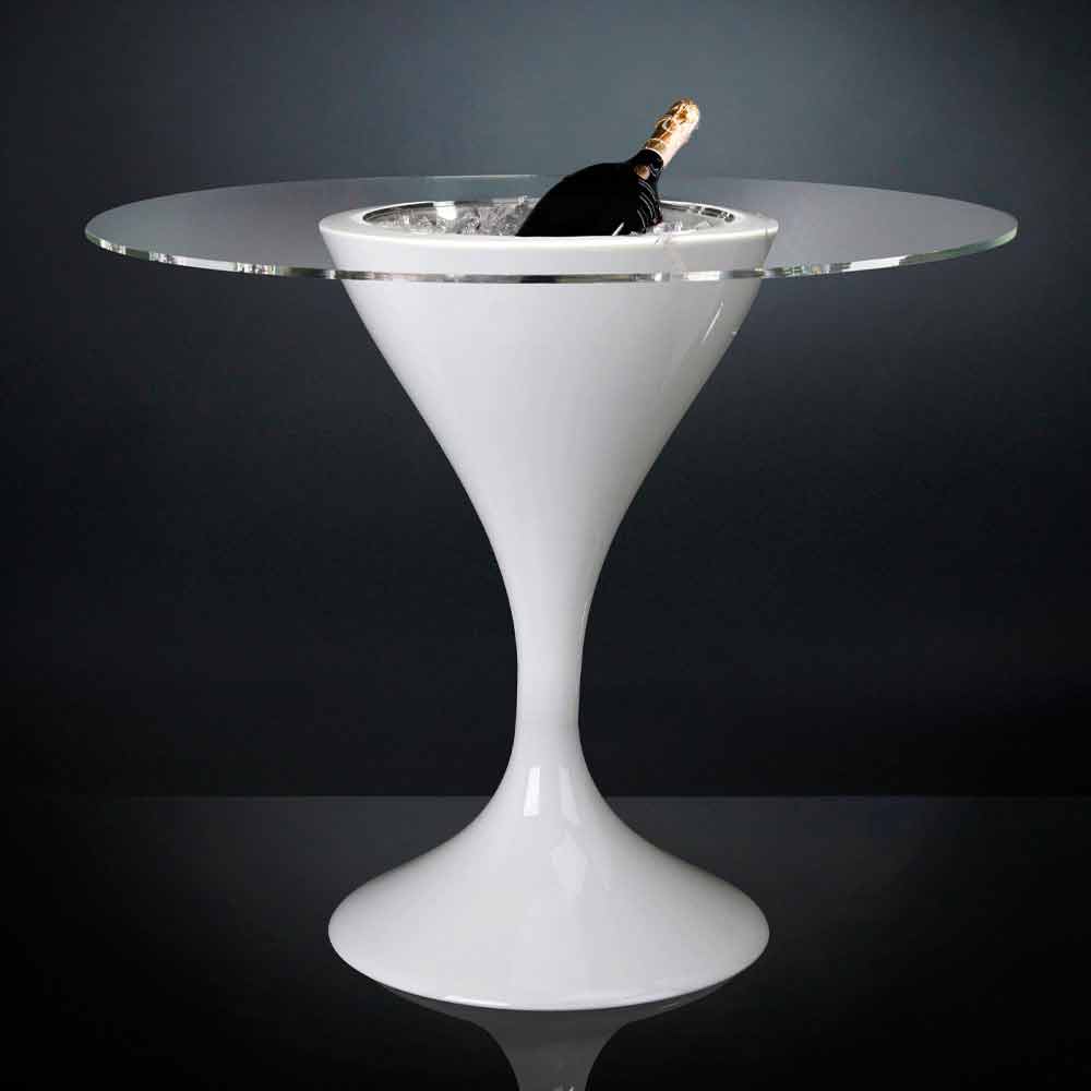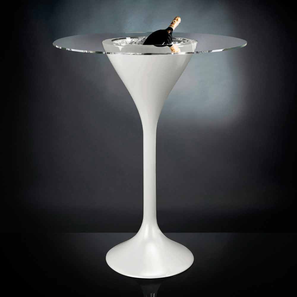 glossy white polyethylene base. The peculiarity of this modern and eccentric high table is the presence of a