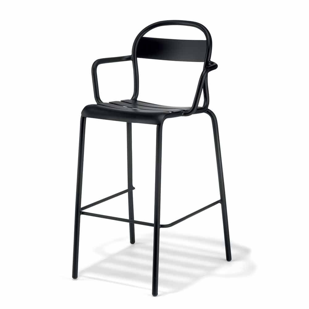 High Outdoor Stool in Aluminum with Armrests Made in Italy - Selima