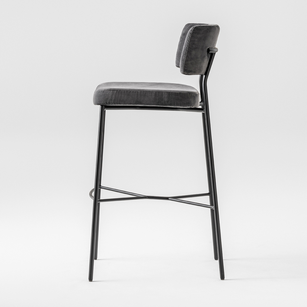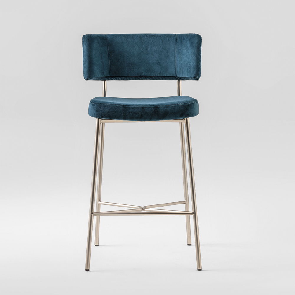 Fine kitchen stool in painted metal and velvet Made in Italy.