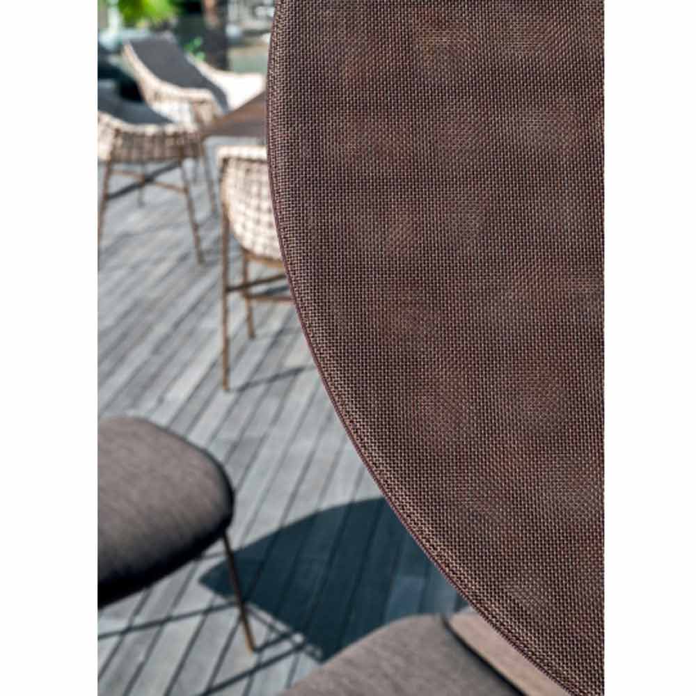 Round fabric parasol with aluminum and steel structure, luxury item.