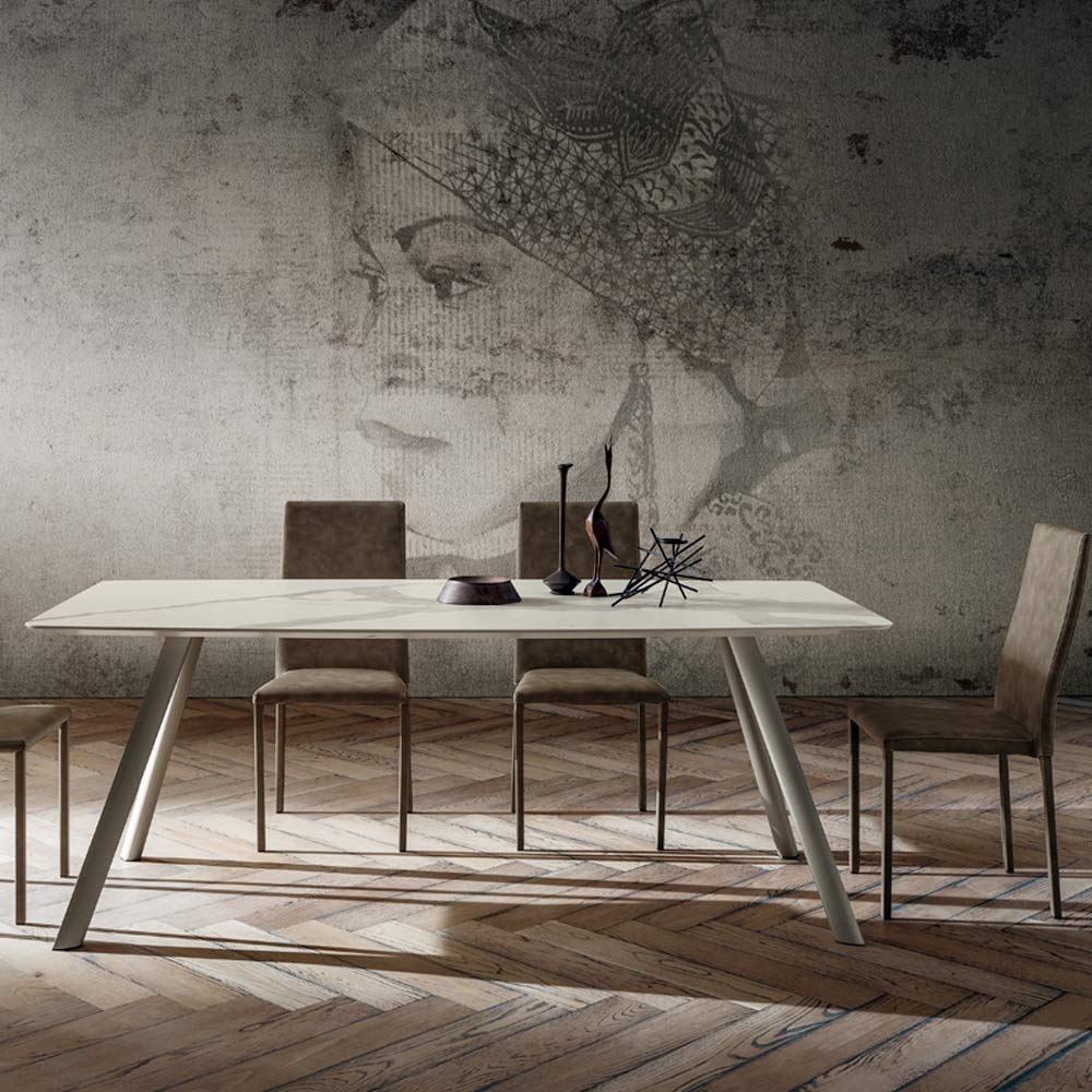 Dining table in laminam and anodized aluminum made in Italy, luxury.