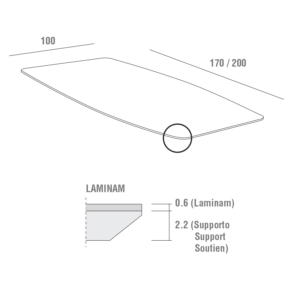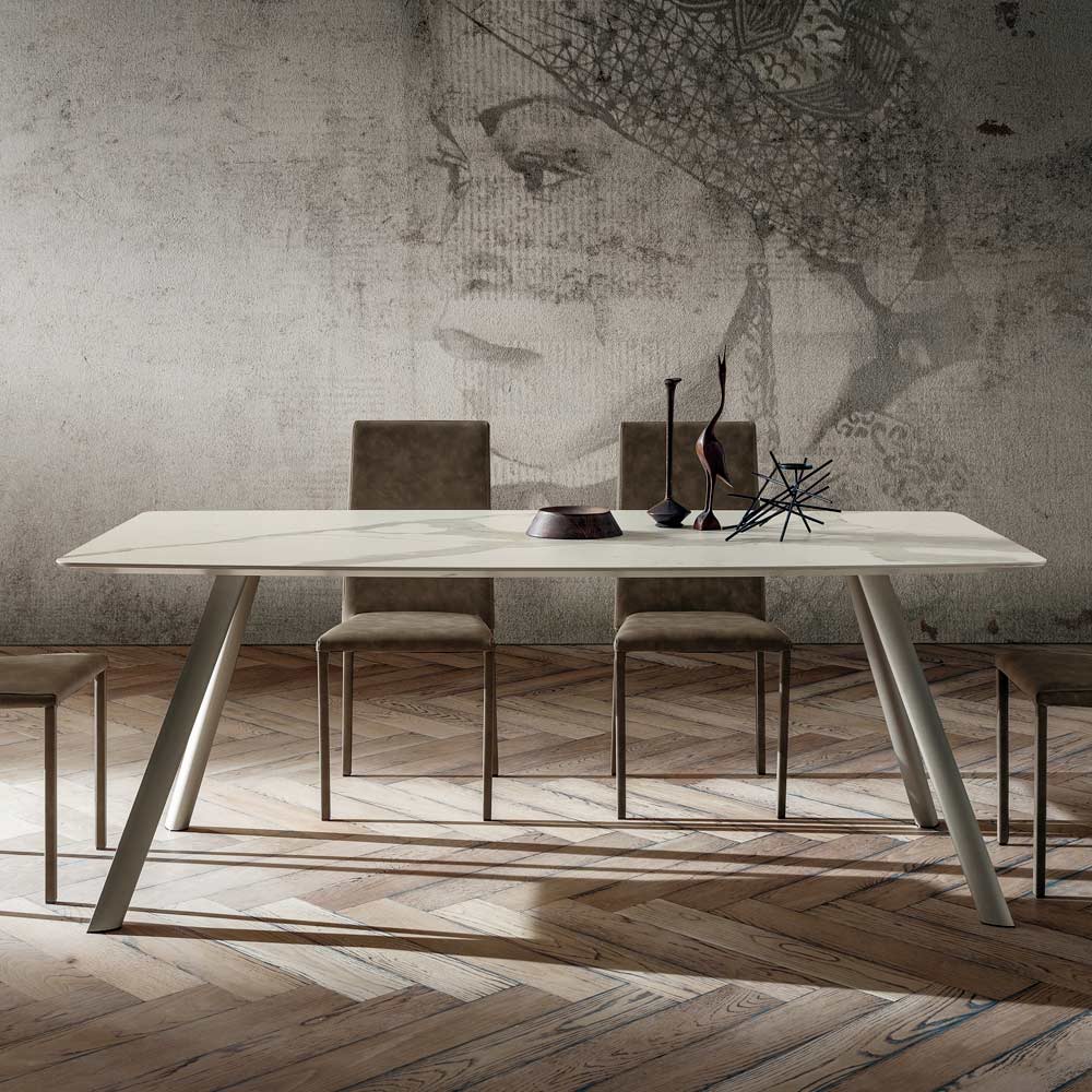 laminam (porcelain stoneware) top glued onto an mdf support surface. From the encounter between the elegance of laminam ceramic and the exclusive and classy touch given by the marvelous finish of the legs, a unique furnishing solution is born, characterized by a
