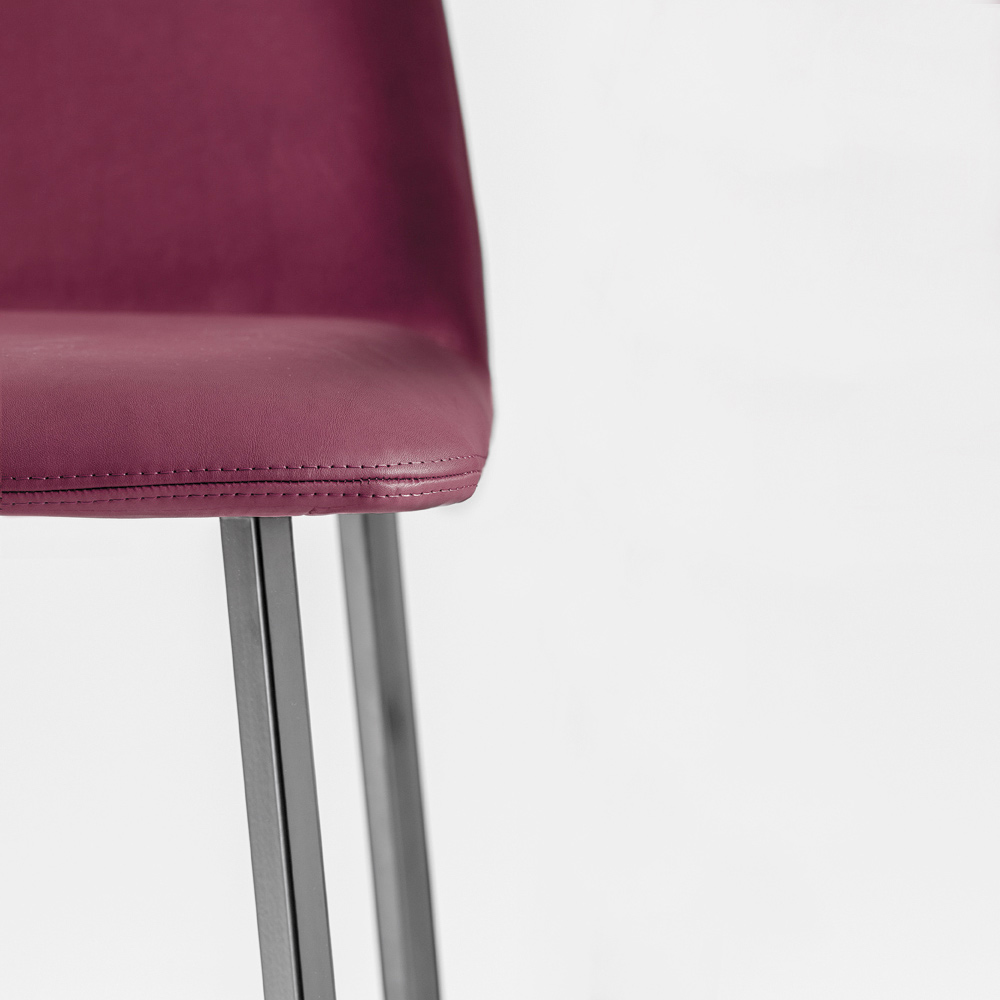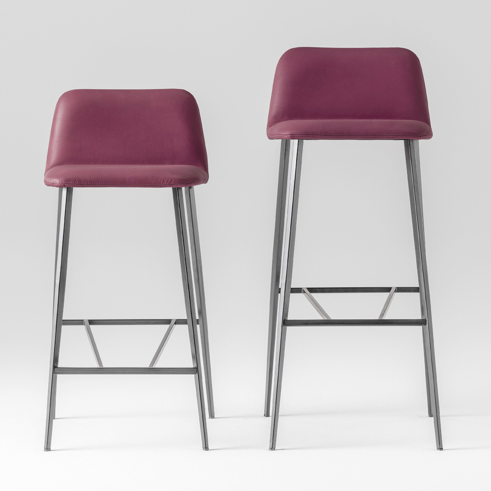 High stool made in Italy with structure in painted metal with lead anthracite finish and padded shell covered in leather . A chair with simple but original features characterized by functionality and unrivaled beauty, ideal for customizing and making the furnishing of kitchens or contract environments unique in which to create a refined atmosphere and a wonderful harmony between styles. Thanks also to the choice of using leather for its upholstery, this stool has a particularly fascinating soul that gives it a sober, discreet and classy design.