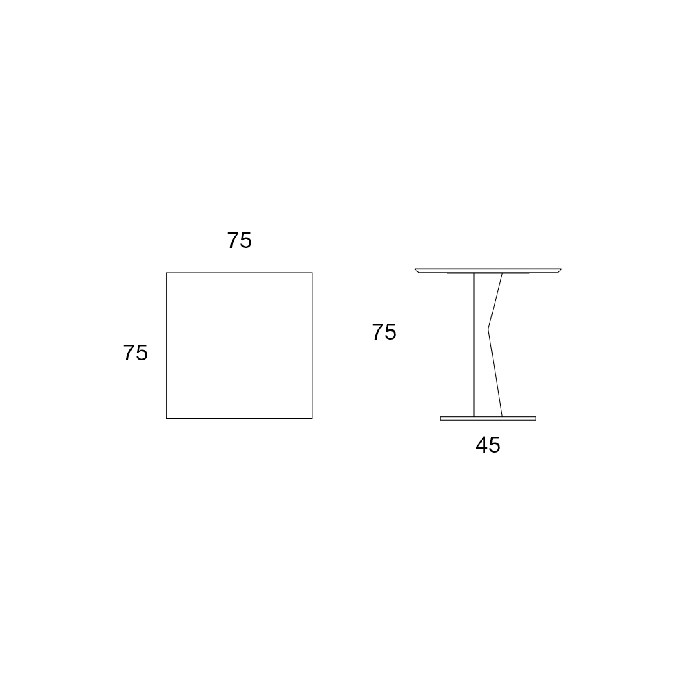Square table in matt ceramic and inclined metal base, made in Italy.