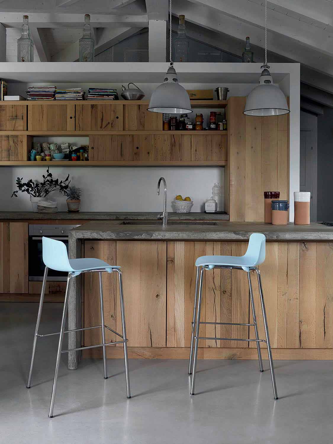 The Christabel bar stool has a minimal style that makes it perfect for any environment thanks to the versatility of the chromed metal structure and the polypropylene seat available in 7 color variants.