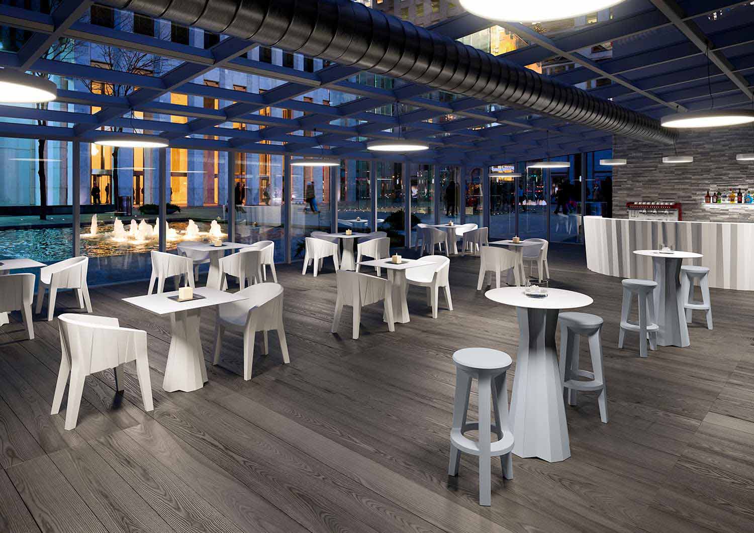 matt white polyethylene bases which provide excellent stability and strength together with resistance to heat, sun and shocks. Ideal to complete the furnishing of environments with a modern and refined design that need a touch of personality and style.