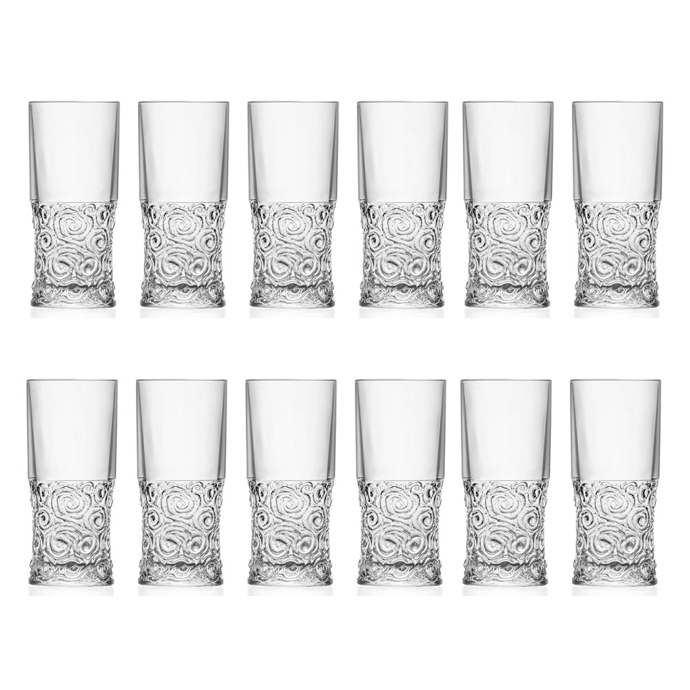 Highball glasses in eco crystal with round decoration 12 pieces made in Italy.