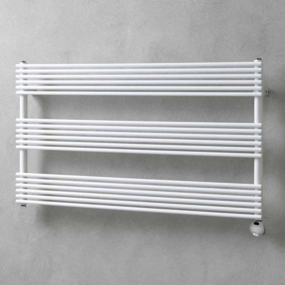 This electric towel warmer has a very practical and functional horizontal design , made with horizontal round tubes that can be easily adapted to any type of style and environment.