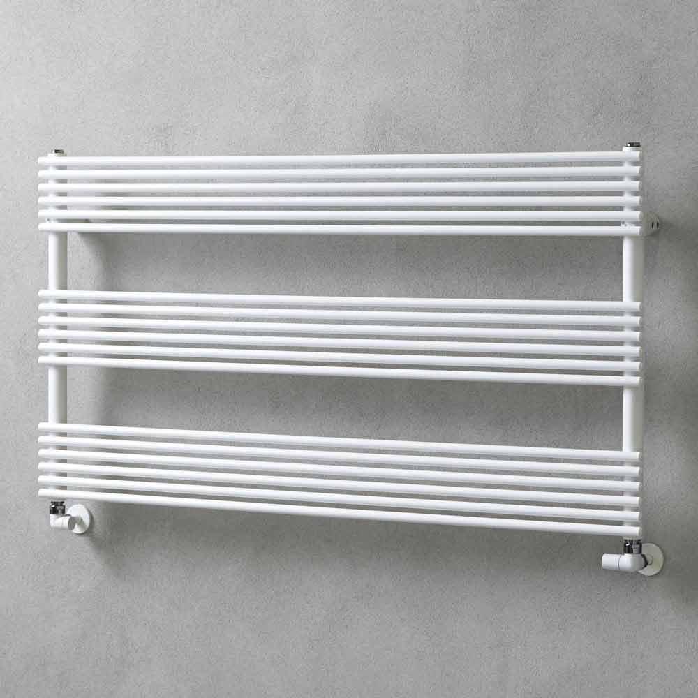 Horizontal tubular radiator for the bathroom with a steel wall design made in Italy.