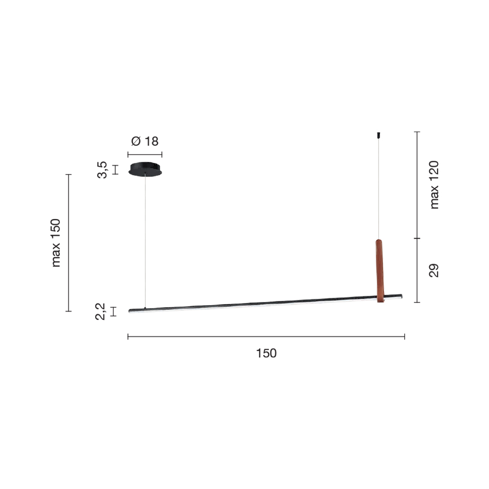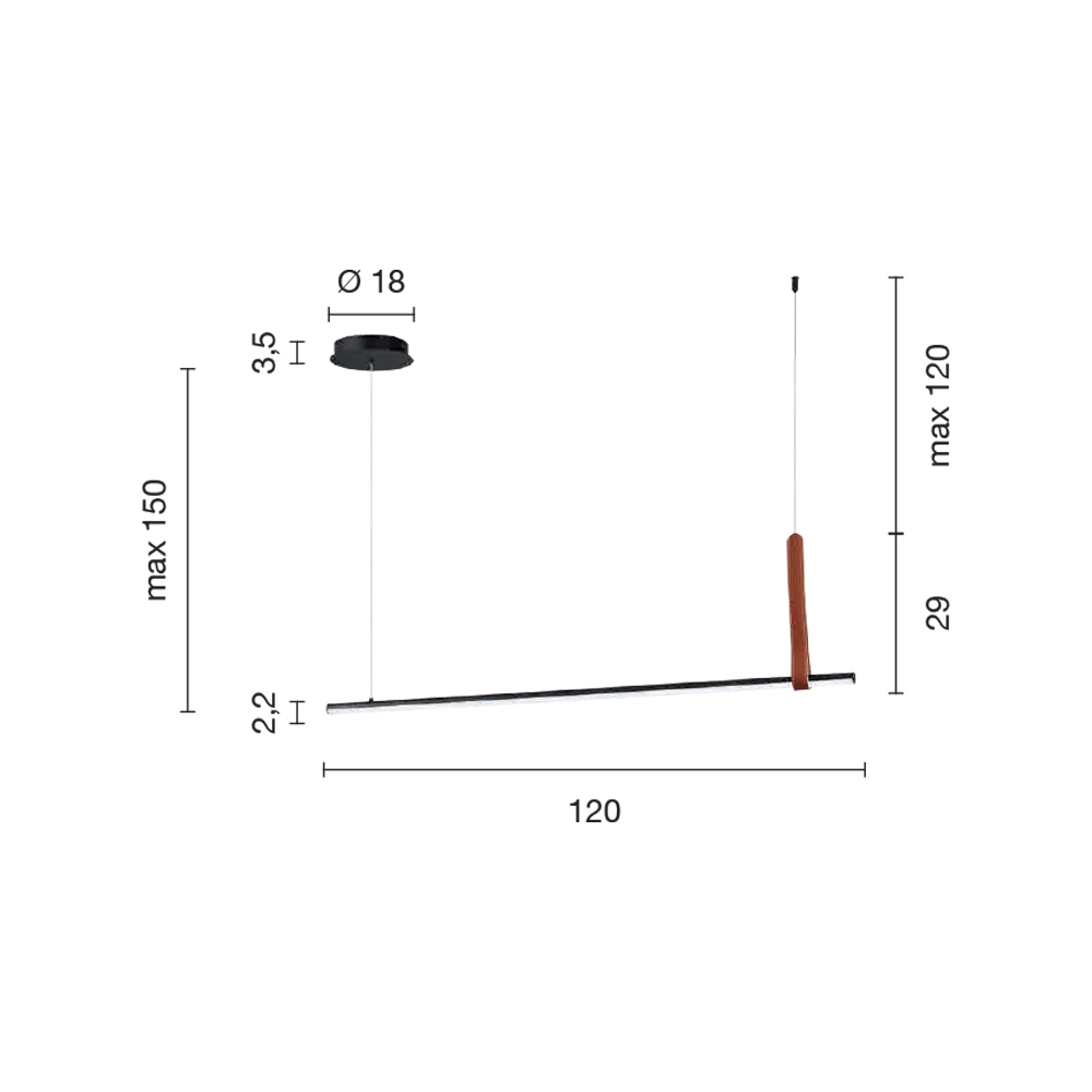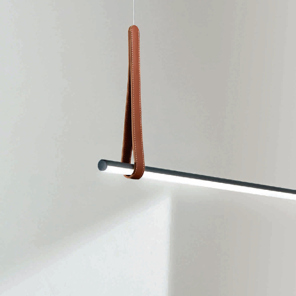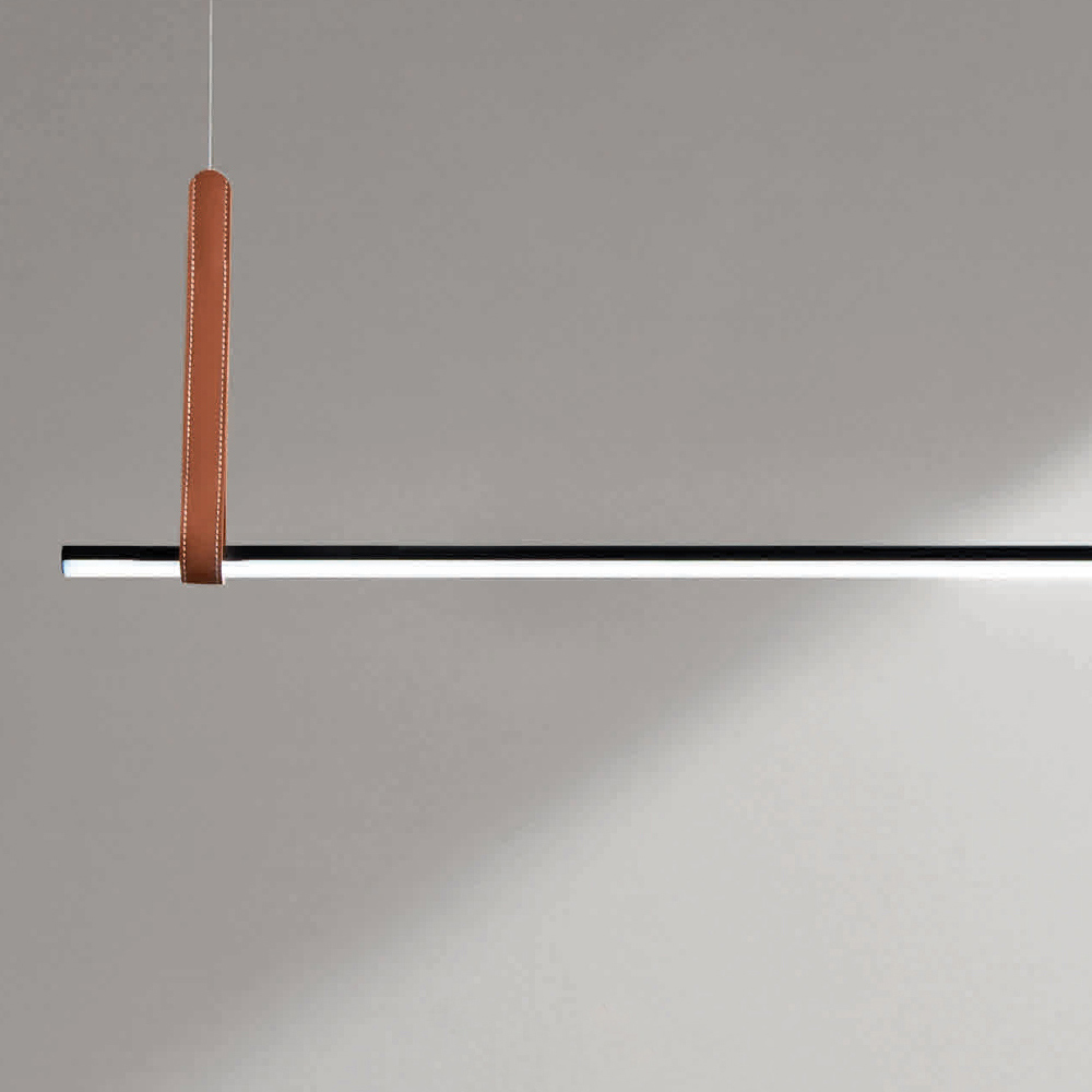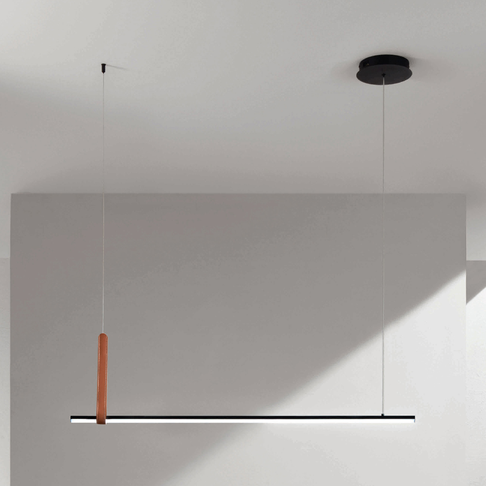 Horizontal Suspension Lamp in Metal and Detail in Faux Leather - Cypress