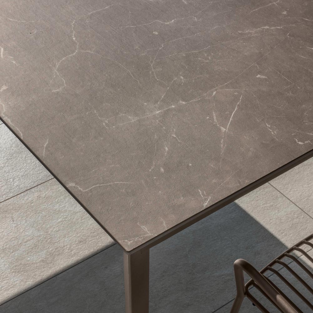 The elegant finishes proposed for the top fit perfectly into any context of relaxation in domestic situations such as gardens but also in contract environments such as bars and restaurants thanks also to the extreme simplicity of its shapes which give the table a