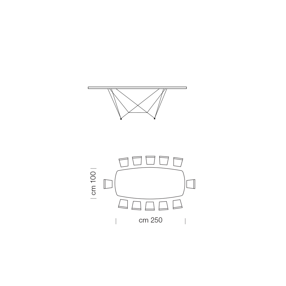 - L 250 x D 100 x H 73.3 cm (12 seats);