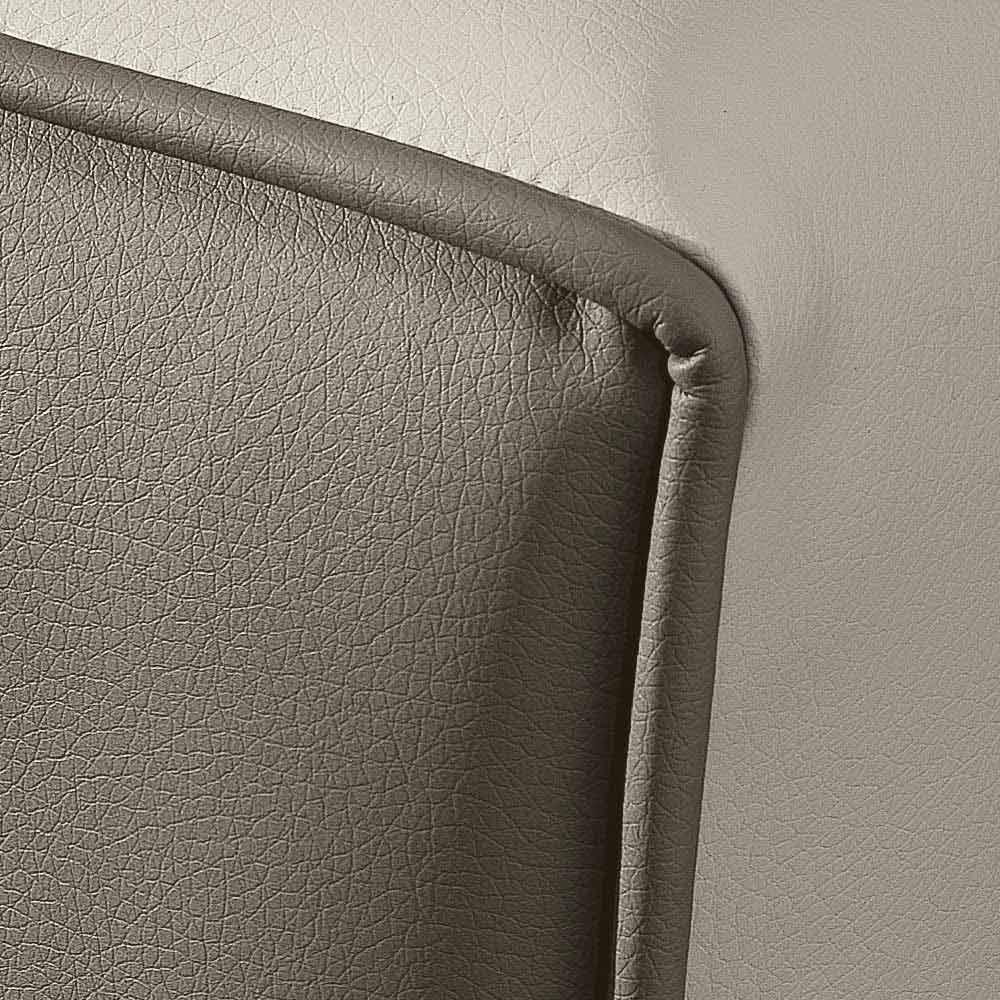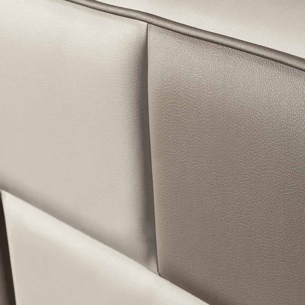 The Gin upholstered bed has an important headboard, composed of a sector quilting with two contrasting colors that dress a supple padded back. The essence of his style is in this succession of essential features, in the harmony of its proportions. Seen from the front, it appears to have been designed with a strong intention to amaze.